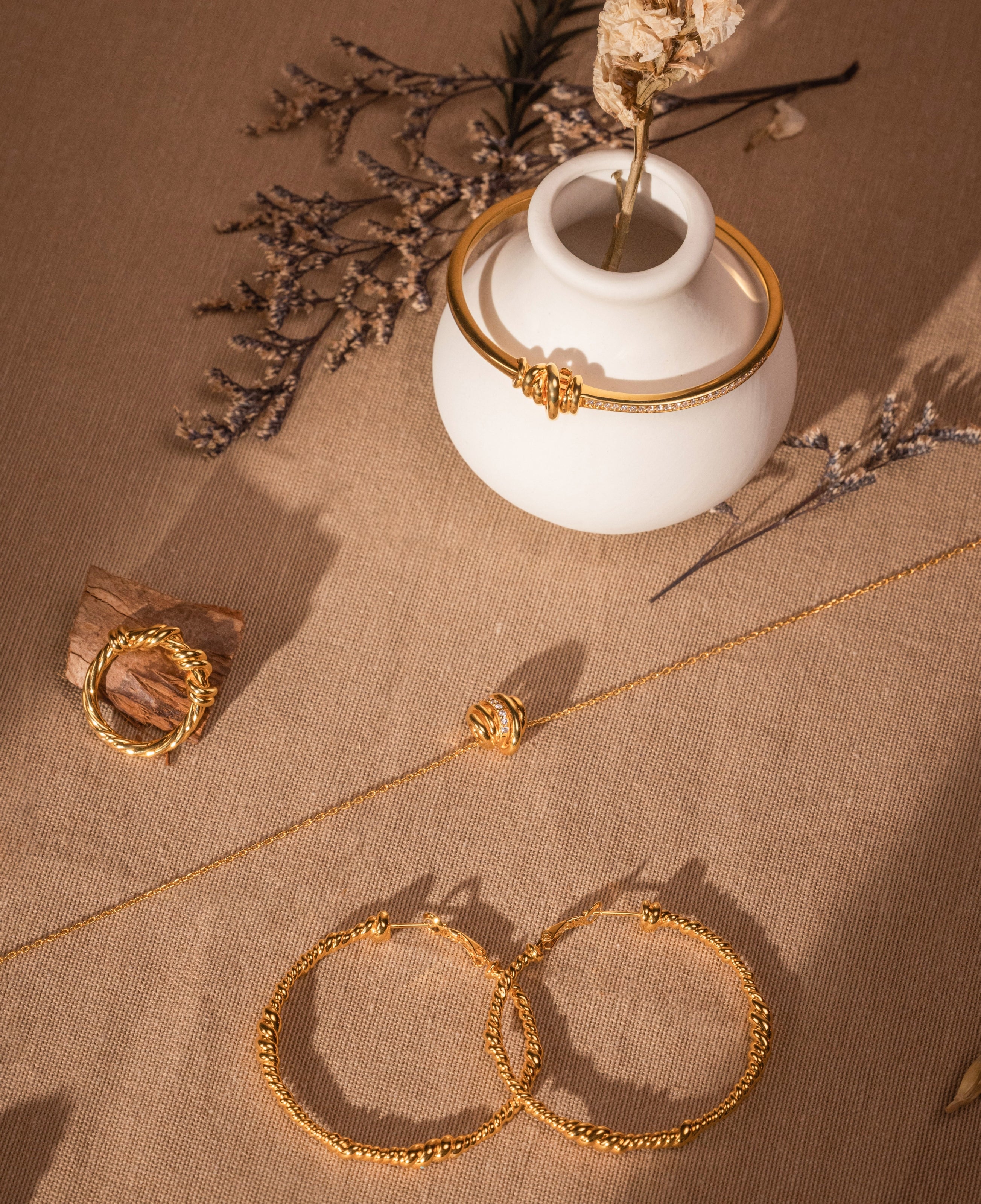 This is where contemporary design meets conscious making. We ensure uncompromising standards by using 100% recycled gold and silver, responsibly sourced gems, and lab-grown diamonds. Even our gold vermeil meets an elevated 18K standard for lasting elegance.
