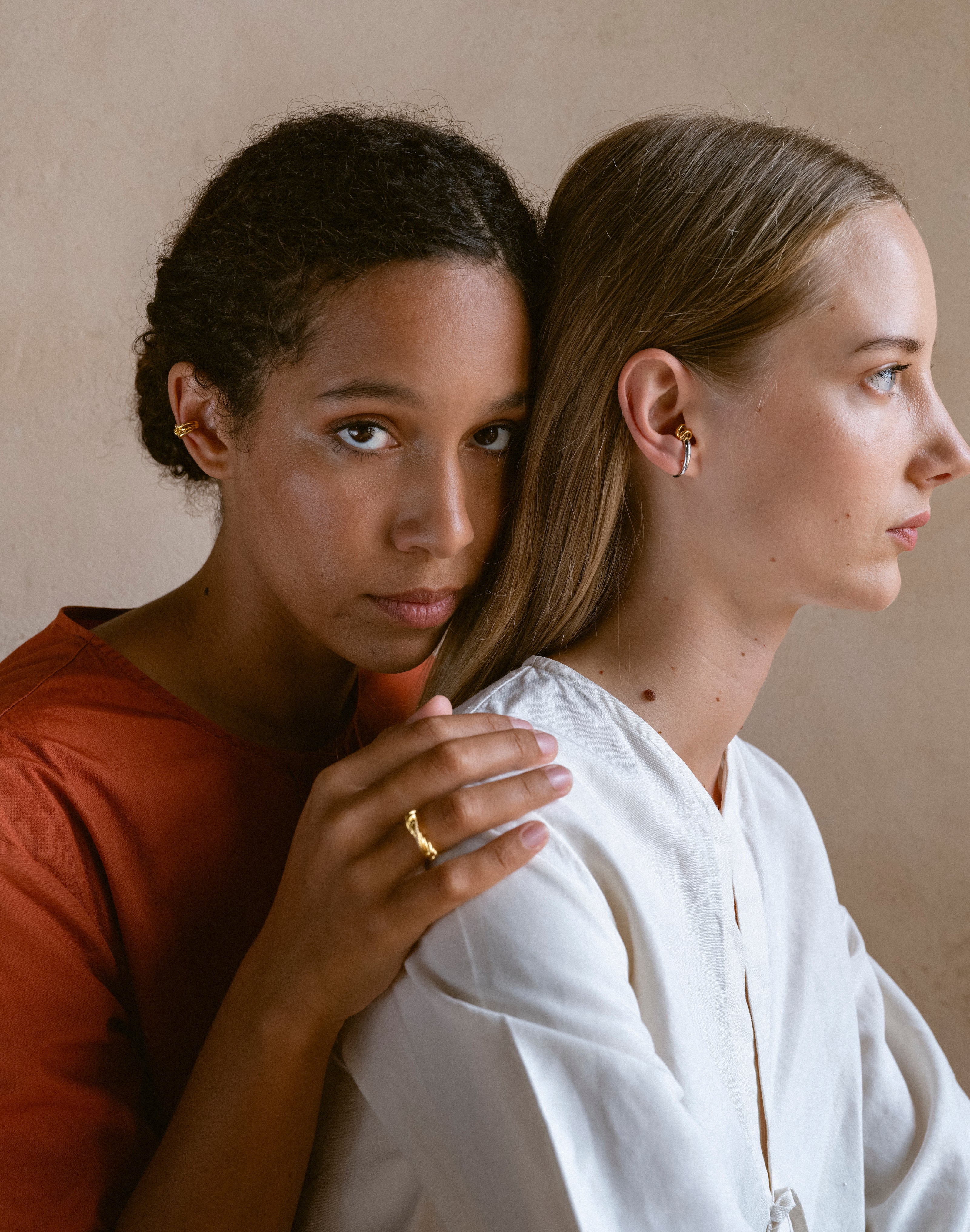 This is where contemporary design meets conscious making. We ensure uncompromising standards by using 100% recycled gold and silver, responsibly sourced gems, and lab-grown diamonds. Even our gold vermeil meets an elevated 18K standard for lasting elegance.