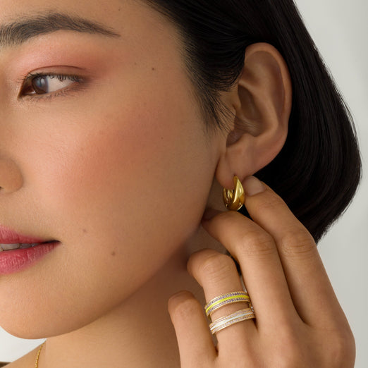 Crafted from 18K recycled gold vermeil or rhodium over recycled silver, these Lura Gold Small Huggie Earrings are celestial rebellion in motion. Each starburst is a collision of luxury and conscience, designed to turn heads and spark conversations—whether you’re commanding a red carpet or rewriting the rules of Monday.